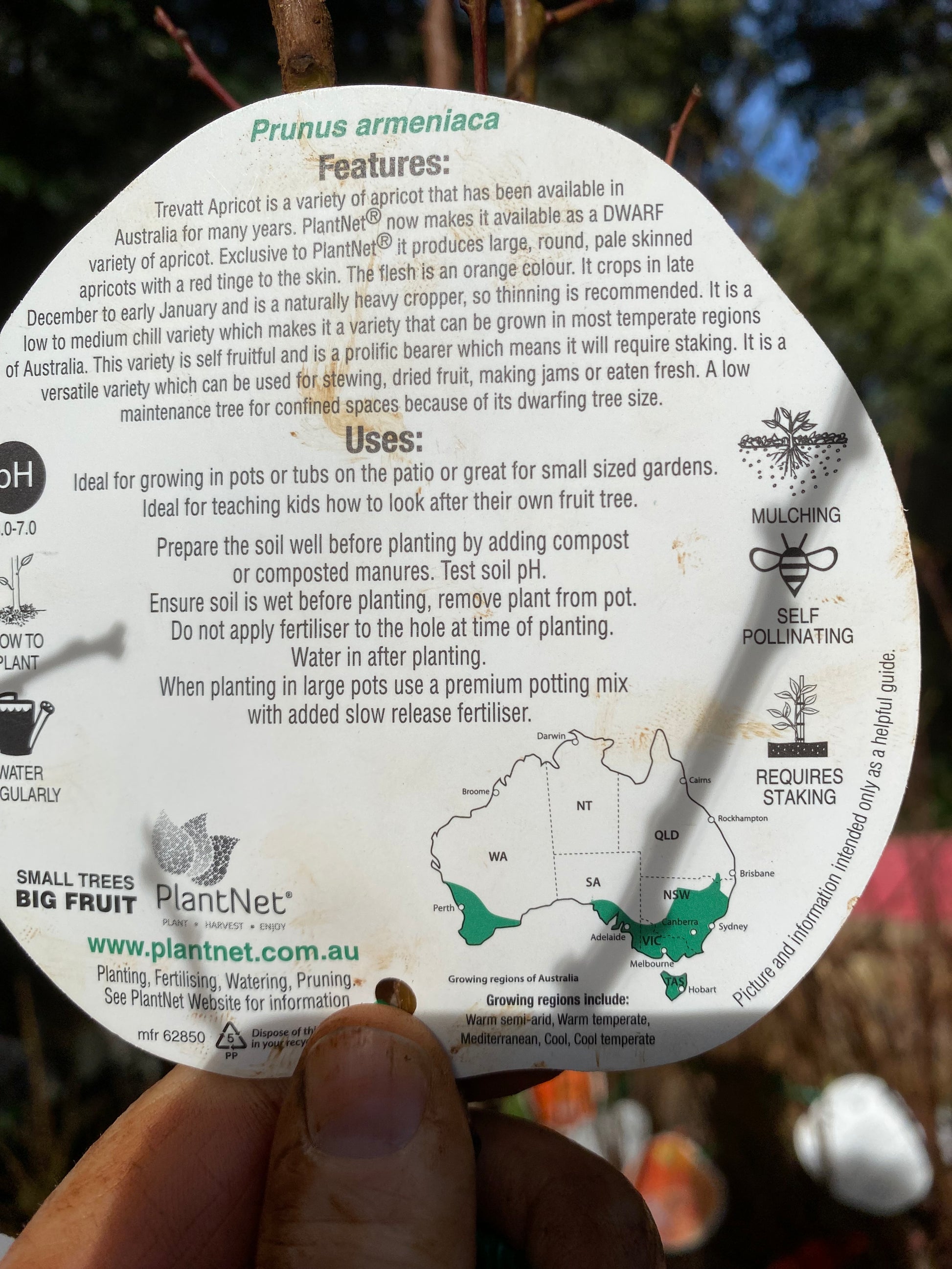 Trevatt Apricot is variety of apricot that has been available in Australia for many years. Plantnet® now makes it available as a DWARF variety of apricot. Exclusive to PlantNet® it produces large, round, pale skinned apricots with a red tinge to the skin. The flesh is an orange colour.