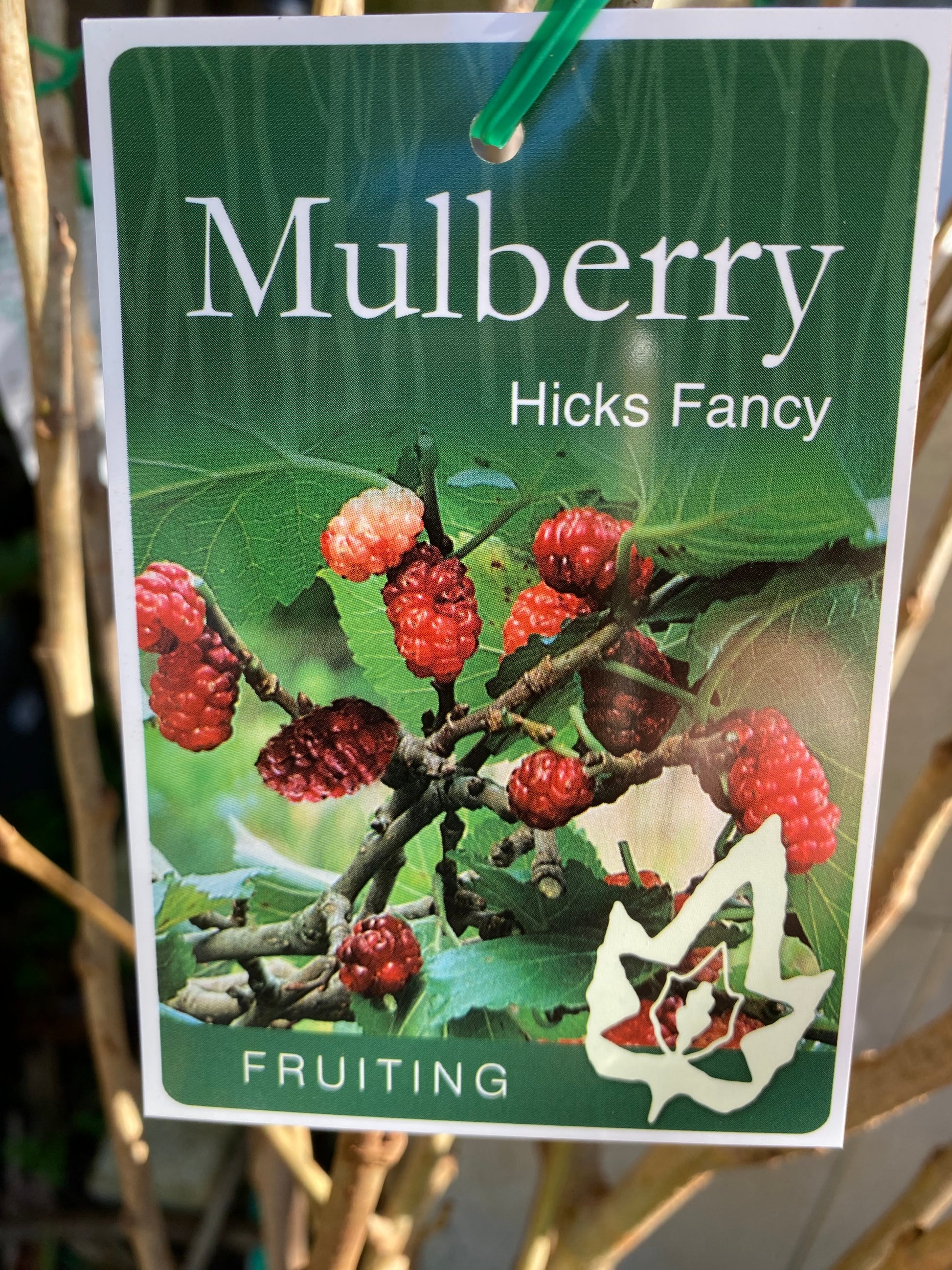 Long red berries, when fully ripe the fruit is very sweet and juicy with an unusual slightly acid taste. Used in jams, fresh fruit, and also wines and juices. This is a smaller tree with very good crops. The leaves can also be used as feed for silk worms.
